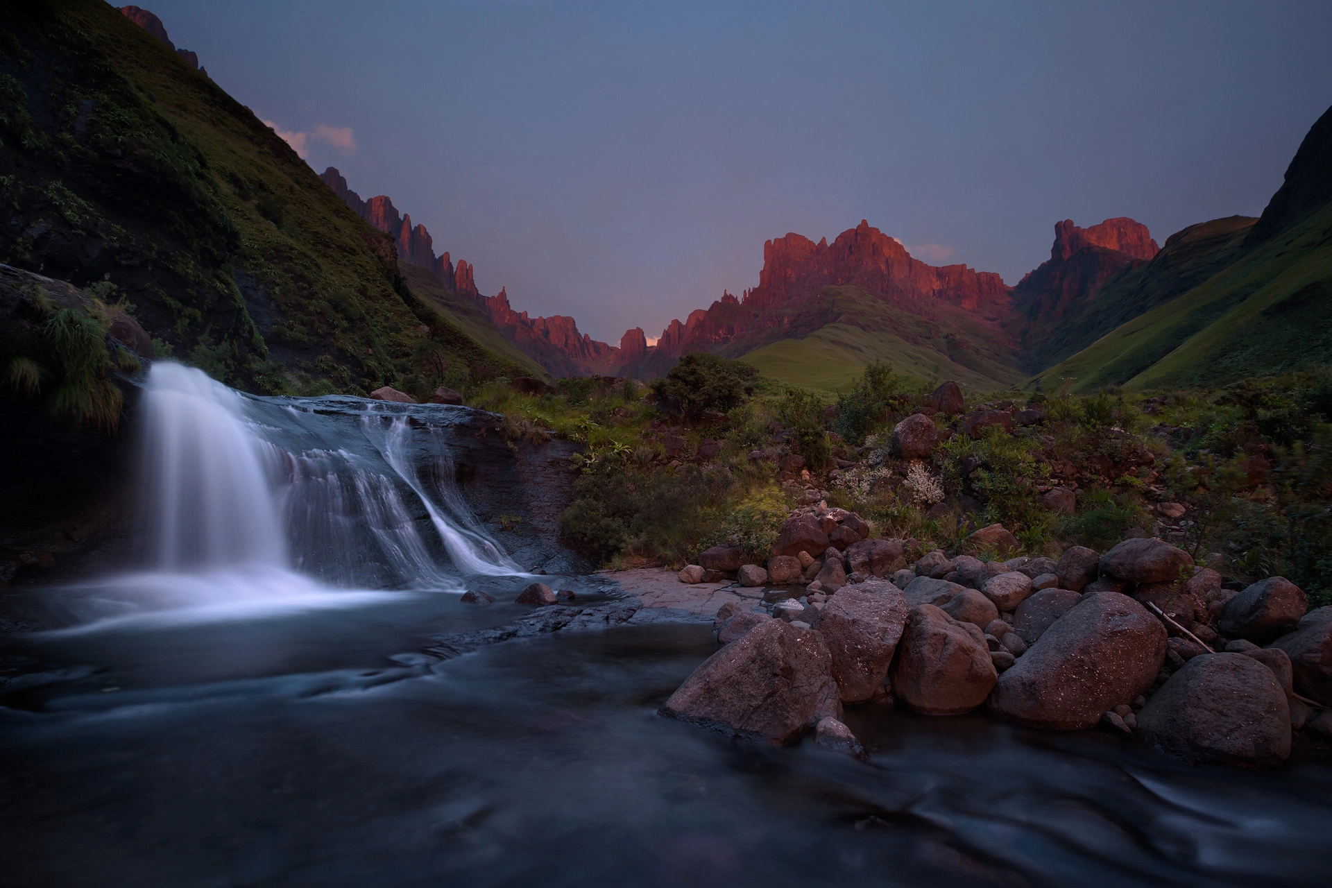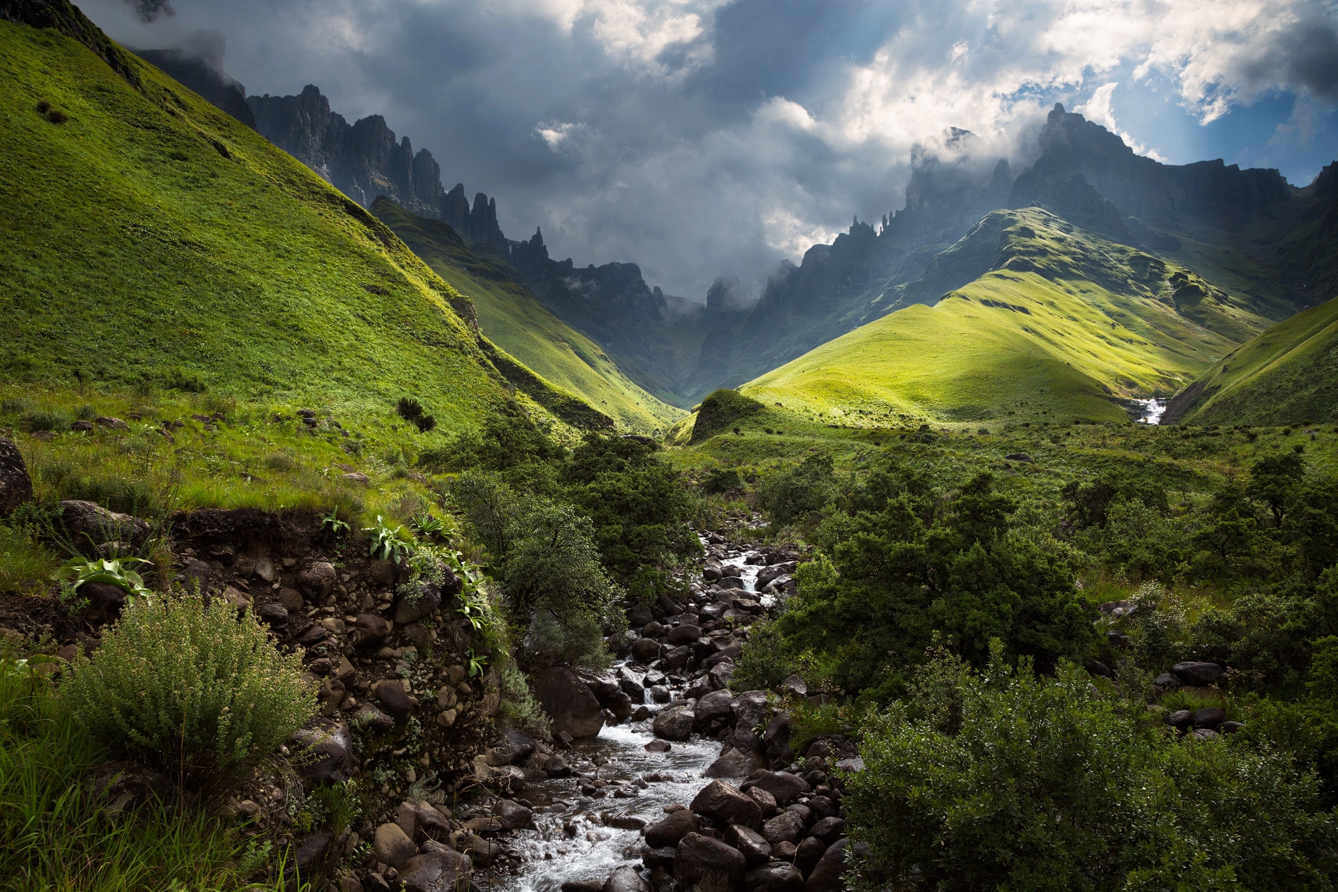 The locations of the photos in the gallery are within Southern Africa, where the vastness of the arid Kalahari Desert contrasts dramatically with the rugged peaks of the Drakensberg Mountains and the serene coastal expanses of the Western Cape and Wild Coast.